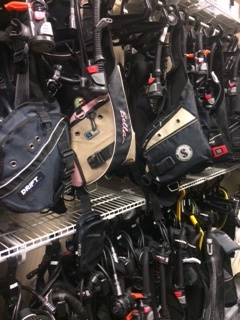 Closeouts and last years models available in limited qty. on new equipment. Fins, Regs, masks, BCDs, etc.